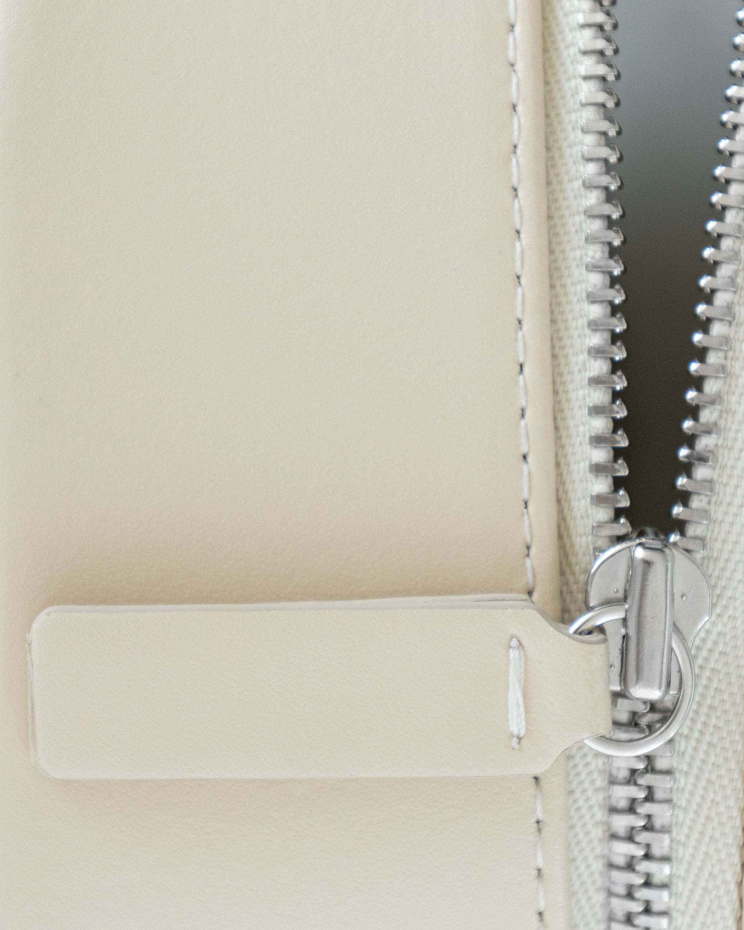 Кейс міні молочного кольору з бузковою підкладкою. Натуральна шкіра та велюрова підкладка. Кейс, що кольорами нагадує весняний світанок. Щоб не шукати те, що любиш по всій сумці. Твій постійний партнер в операції «довге життя улюблених прикрас».
